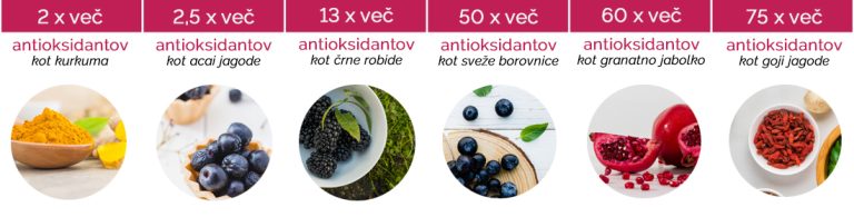 Spodaj prikazujemo količino antioksidantov v primerjavi z ostalimi sadeži: