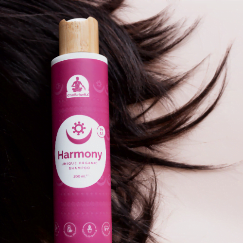 Za umivanje las toplo priporočamo energijsko informiran šampon Harmony, ki je narejen iz ekoloških sestavin vključno z eteričnimi olji, ki poskrbijo za zdravje lasišča. Šampon bo še pojačal dobrodejno delovanje rastlinske obloge za lasišče.
